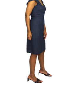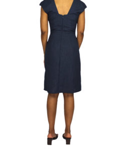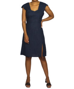 El Jessica Dress es un traje de lino elegante y a la vez sensual. El corte característico de sus hombros llamaran la atención al igual que la ligera apertura con la que cuenta en una de sus piernas.
